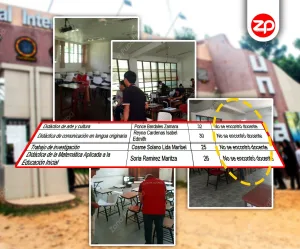 En Educación Inicial Bilingüe, se registró la ausencia de Maritza Soria Ramírez, mientras que en Ingeniería Agroforestal Acuícola, no se hallaron en aula los docentes a cargo de las secciones 07 y 09; y en Ingeniería Agroindustrial, las aulas 12 y 14 también estaban vacías durante la verificación.