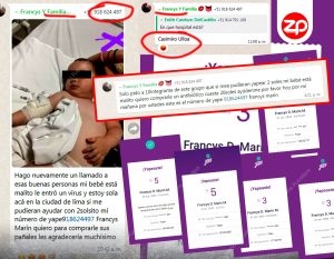 Esta mañana, un usuario del grupo de WhatsApp “Zona Pucallpa” pidió a nombre de un supuesto bebé en situación crítica. El mensaje decía: “Hago nuevamente un llamado a esas buenas personas mi bebé está malito le entró un virus y estoy sola acá en la ciudad de lima si me pudieran ayudar con 2solsito mi número de yape918624497 Francys Marín quiero para comprarle sus pañales les agradecería muchísimo”. Los miembros del grupo, conmovidos por la historia, comenzaron a transferir dinero sin dudar, confiando en la veracidad de la situación.
