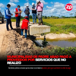 Funcionarios de la Municipalidad Provincial de Padre Abad contrataron, en 2020, los servicios de un proveedor para el mantenimiento de las redes de agua y desagüe para la comunidad rural Shambillo. Estas obras que no fueron ejecutadas, pero sí remuneradas.